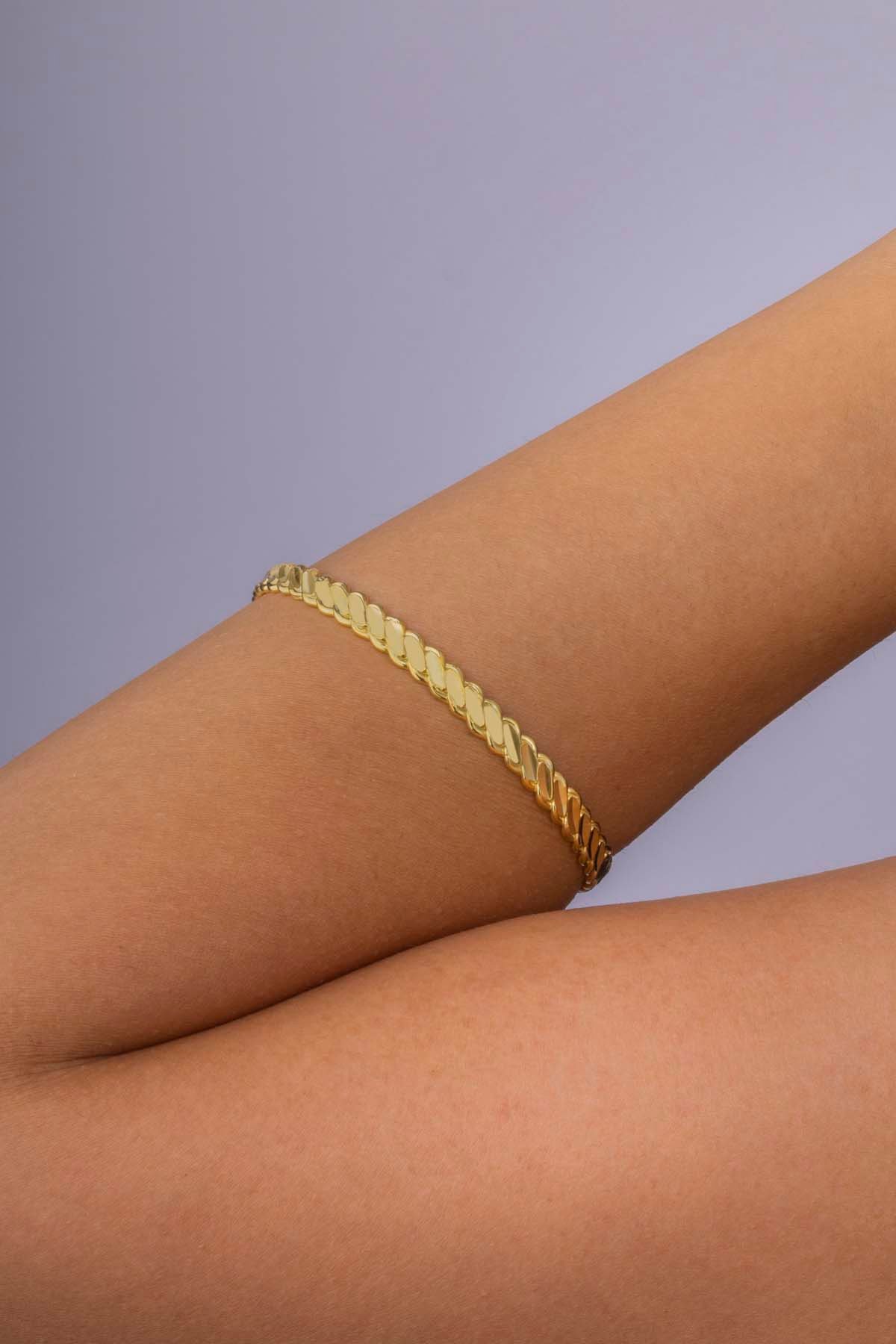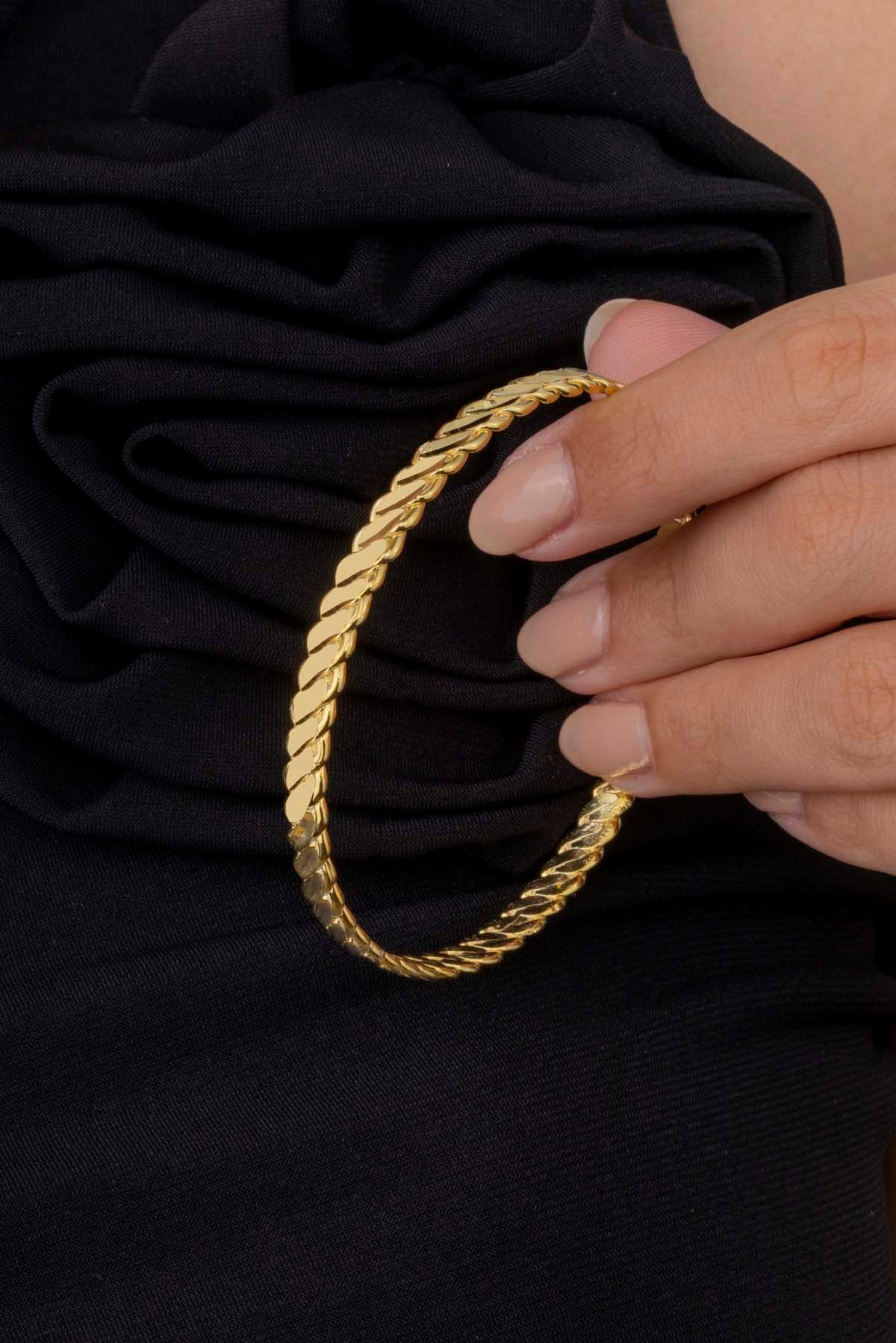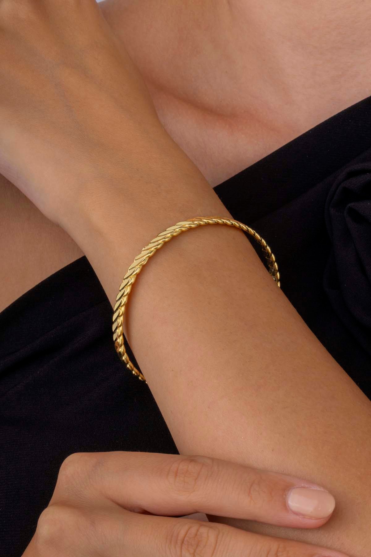 Altın Kaplama 925 Ayar Gümüş Burma Kadın Bilezik ile şıklığı ve kaliteyi bir arada deneyimleyin. Zarafeti günlük yaşamınıza taşıyın ve stilinizi bir adım ileriye taşıyın.