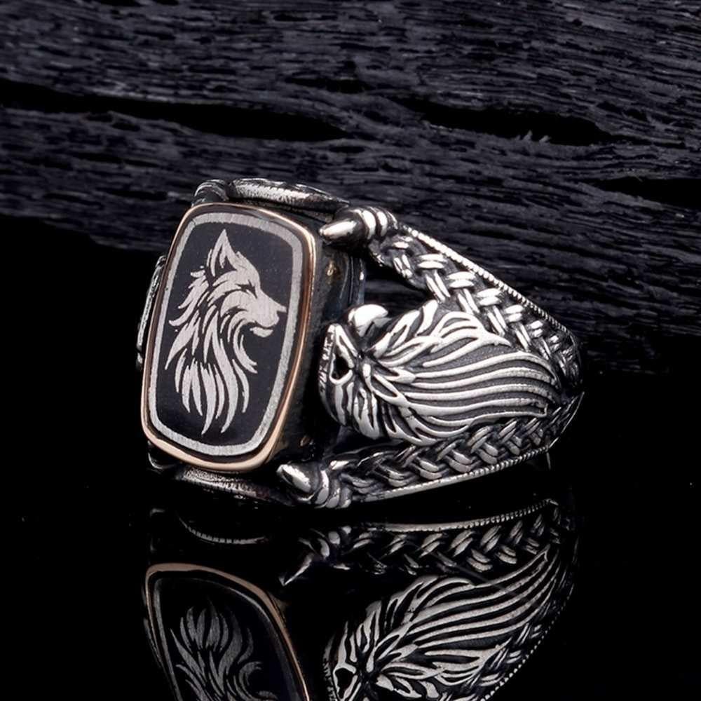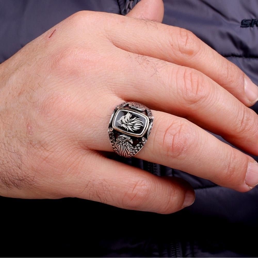 Bozkurt ve Kartal Detaylı Erkek Gümüş Yüzük
