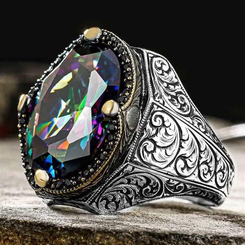 - Üzerinde Mistik Topaz Taşı Yanları ise Kalem İşlemesi ise Süslenmiştir.